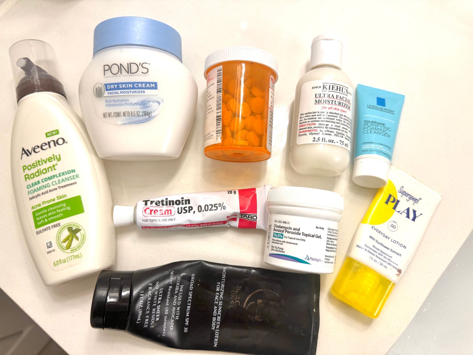 In the morning, I cleanse using either Kiehl’s Ultra Facial Cleanser, Aveeno Clear Complexion Facial Cleanser, or La Roche Posay Hydrating Gentle Cleanser. Next, I apply the Clindamycin antibiotic cream, followed by moisturizer, either Kiehl’s Ultra Facial Moisturizer or Pond’s Dry Skin Cream. Lastly, I finish with sunscreen: Black Girl Sunscreen or Supergoop Play Everyday Lotion SPF.